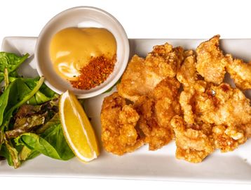 Chicken meat, spicy, potato starch, garlic, ginger and soyu