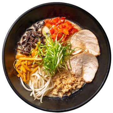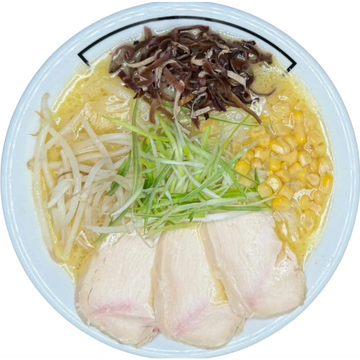 Choice of pork, chicken, or vegan broth. Topped with chicken chashu, black mushrooms, corn, and shredded green onions.